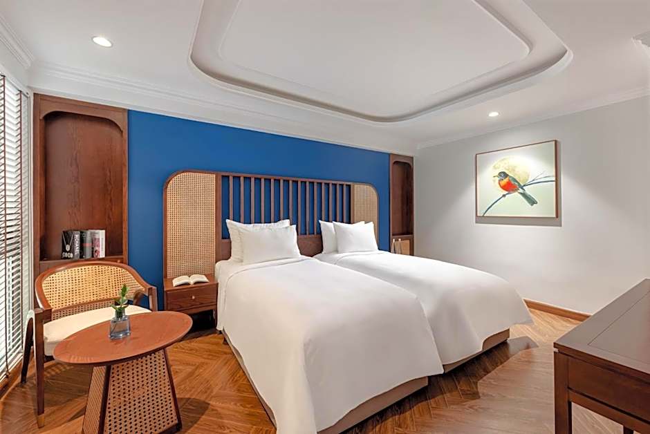 The spacious twin/double room offers air conditioning, soundproof walls, a balcony with city views as well as a private bathroom featuring a walk-in shower.
